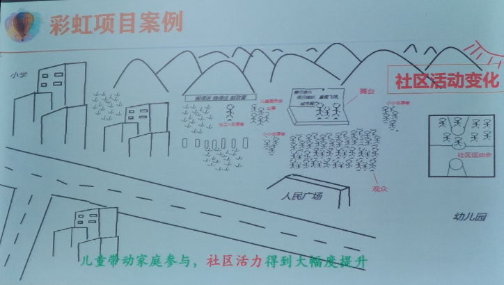 之后,總干事周宇虹又向項(xiàng)目組詳細(xì)地講解彩虹目前開(kāi)展兒童服務(wù)的模式:通過(guò)在社區(qū)內(nèi)開(kāi)展兒童服務(wù)從而深入社區(qū)內(nèi)部連結(jié)社區(qū)的兒童與居民,提高社區(qū)整體的兒童保護(hù)意識(shí),并且將彩虹的活動(dòng)中心打造成一個(gè)兒童可以感到安全自由的空間,當(dāng)兒童感到危險(xiǎn)或需要幫助和服務(wù)時(shí),成為孩子們可以求助的安全小屋……